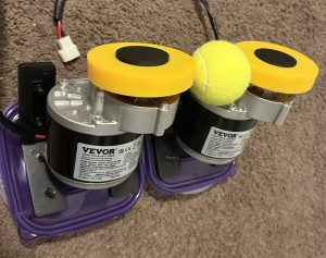 The most significant risks that could jeopardize the success of the project is still the actual launcher mechanism, but it is not as severe as last week since we are already building it. With the 3D printed wheel attachments, 45º angle connectors and screws, PVC pipe/sheet, and putty, we are able to attach the wheels to the axis of the bike motor and use putty for stabilization and strongly attach the motor base at a 45º angle. The PVC pipe is very sturdy, which makes us feel more confident about our structure compared to the 3D printed design. A small risk would be that we are currently using temporary solutions for some parts. The PVC sheet, which acts as our base lid, did not arrive in time this week so we are using a temporary solution to attach the motors and create a distance between them to launch a tennis ball. The motor control board we borrowed from the ECE department is also not working, so a temporary one that has an on and off switch and potentiometer speed control is being used. However, these are mainly used for interim demo and once we have better working parts come in, we are confident in having everything work and integrated as intended. Pictures of current setup are included below.